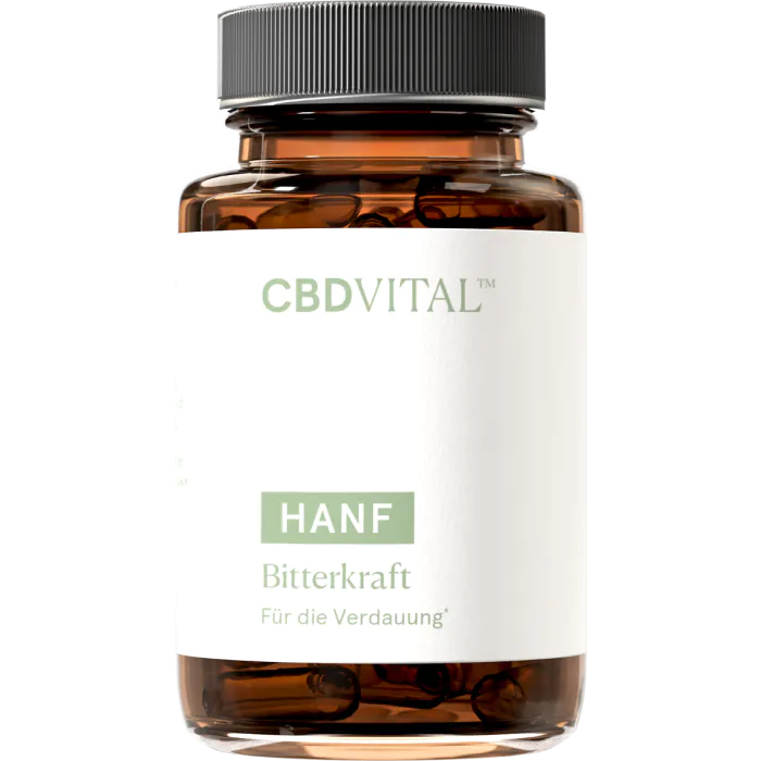 Die CBD VITAL Hanf Bitterkraft Kapseln kombinieren natürliche Bitterstoffe zu einem erlesenen Kräuterauszug. Löwenzahn, Brennnessel, Enzian, Schafgarbe, Artischocke, Curcuma & Co. sorgen für die volle Kraft an Bitterstoffen. Die Kombination mit Selen, Zink, Hanfprotein und Reishi, einem traditionell chinesischen Vitalpilz, macht die Kapseln im Vergleich einzigartig. Die Bitterstoffe tragen zusätzlich dazu bei, lästigen Heißhunger zu reduzieren und sorgen dafür, sich schneller satt zu fühlen. Perfekt für Naschkatzen und Personen, bei denen die Augen oft größer sind als der Hunger. Hanfprotein und Reishi sorgen für den zusätzlichen Wohlfühl-Effekt und schmeicheln dem überlasteten Magen. Spüren Sie mit Hanf Bitterkraft das volle Potential der Bitterstoffe.