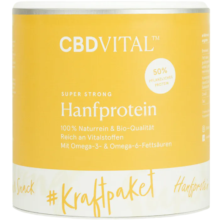 Das Hanfprotein besteht aus biologisch hochwertigem Eiweiß (alle essenziellen Aminosäuren), essenziellen Mikronährstoffen (Eisen, Zink, Magnesium) und vielen Ballaststoffen, die der Verdauung und dem Stoffwechsel guttun. Das Bio-Hanfprotein von CBD VITAL ist die optimale Alternative zu tierischem Eiweiß und enthält leicht verdauliches, maximal verträgliches Eiweiß - garantiert frei von Pestiziden aber auch 100% frei von Antibiotika und Hormonen.